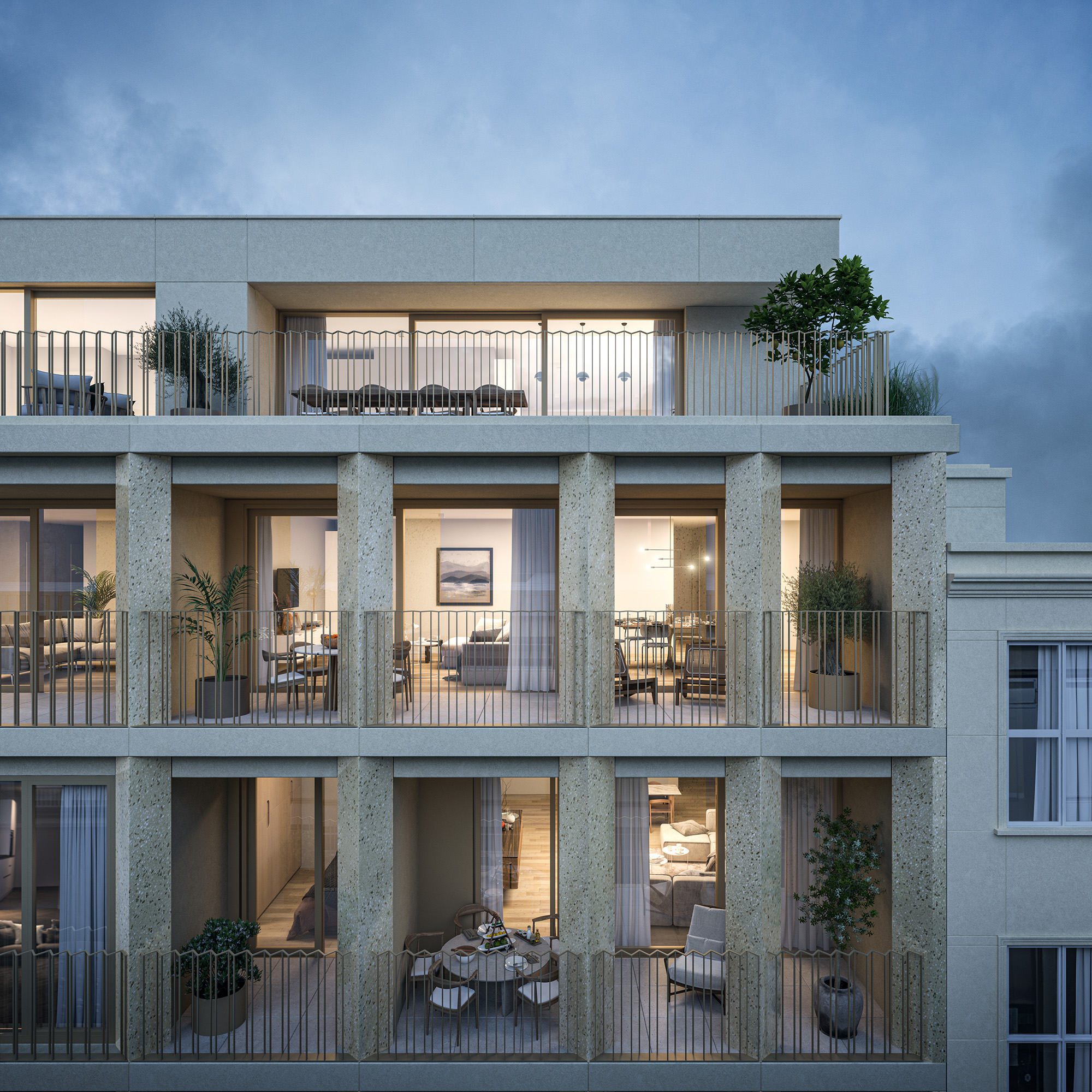 - Elk appartement beschikt over ruime buitenruimtes
